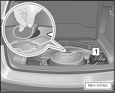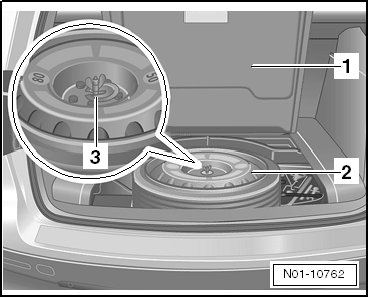 - Remove the wing nuts - 3 - for the spare tire, if applicable and remove the spare tire - 2 -.