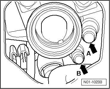 - Disconnect the filling device (VAS 6277/2) and the overflow protection (VAS 6277/3) from the additive container connections, - arrows A + B -.