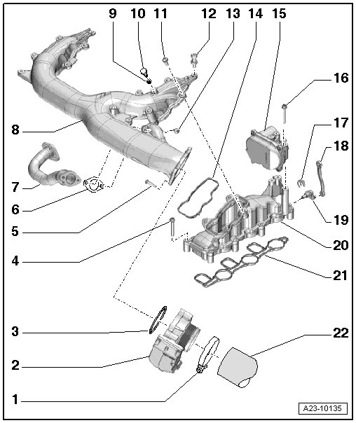 The illustration shows the upper intake manifold and lower left section.