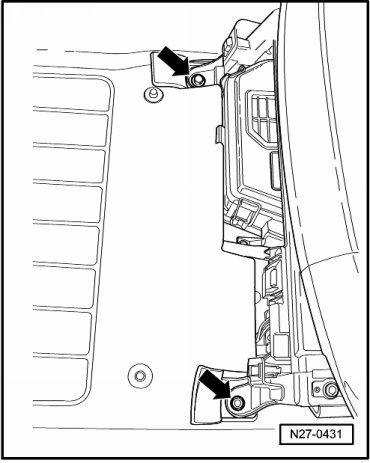 - Open battery box clips - arrows - and remove cover.
