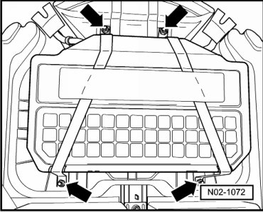 - Replace seat frame mounting bolts - arrows - and tighten them to 45 Nm.