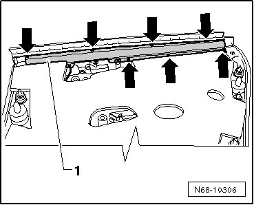 - Remove the seven bolts - arrows - on the rear side of the door trim.