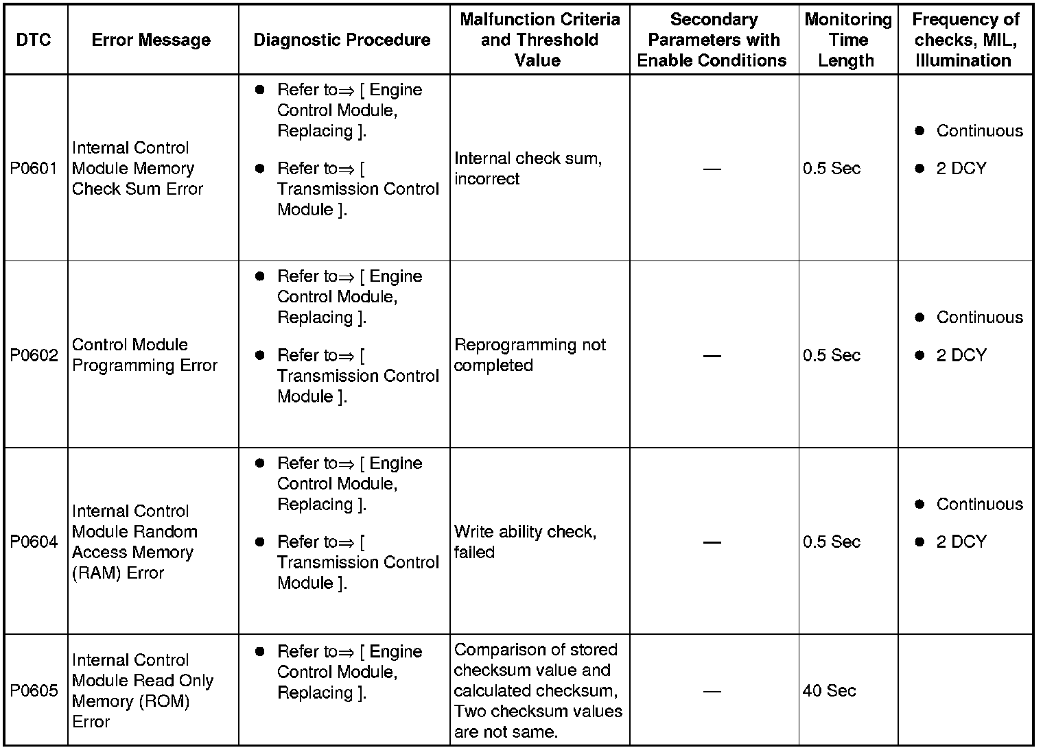 A L L Diagnostic Trouble Codes ( DTC )