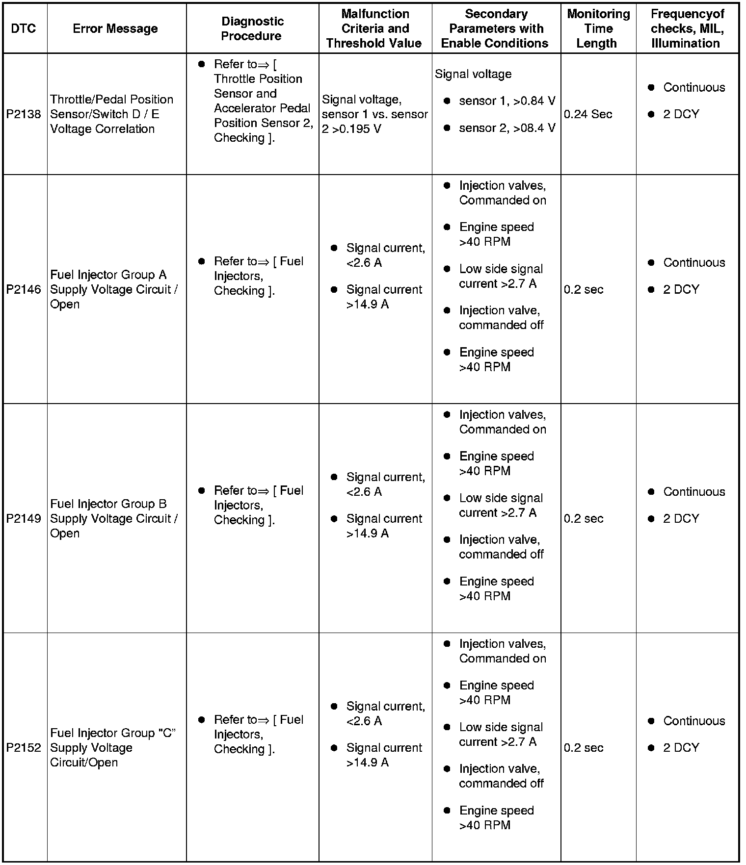 SAE P2xxx Diagnostic Trouble Codes