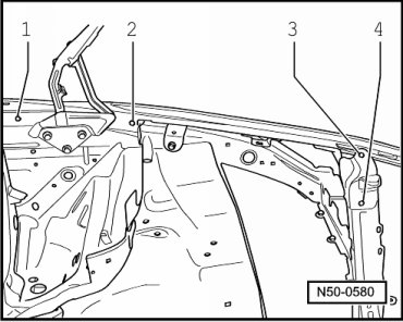 - Remove the bolts - 1 -, - 2 -, - 3 - and - 4 -.