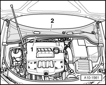 - Remove the rubber seal - 1 - and the plenum chamber cover - 2 -.