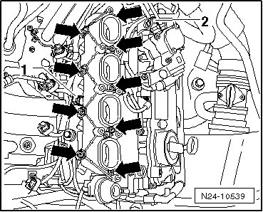- Fasten bolts - arrows - in a diagonal sequence and in several steps. Tightening specifications => [ (Item 12) Bolt ] Description and Operation.