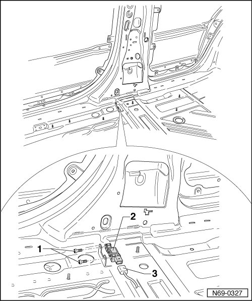 3 Rear Side Airbag Crash Sensor (on front Passenger side) -G257- => [ Rear Side Airbag Crash Sensors ] See Image Below.