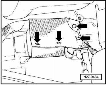 - Open the snaps - arrows - and remove the starter solenoid heat shield.