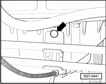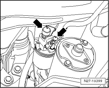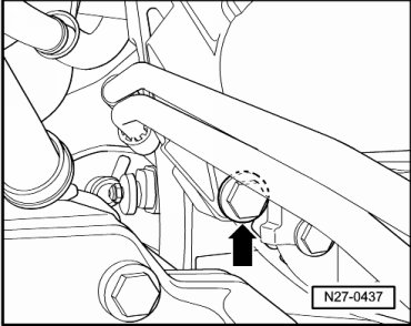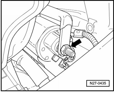 - Remove the upper bolt for the starter - arrow - on the transmission side.