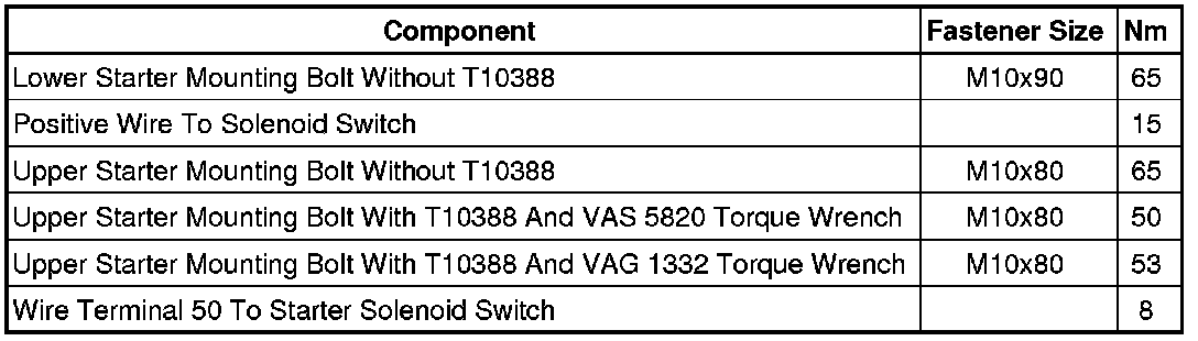 Fastener Tightening Specifications, Starter