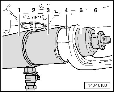 Before pressing out, place (V.A.G 1383 A) with universal mount underneath cylinder, cylinder may fall down at end of pressing out procedure.