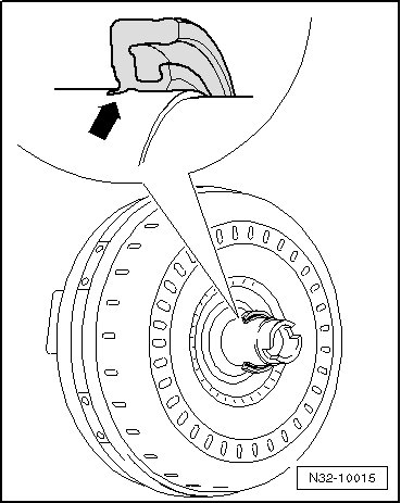 When replacing the torque converter, the outer sealing lips of the seal - arrow - can fold inward.