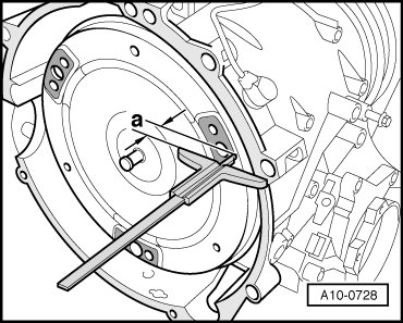 • When the converter is installed correctly, the distance between the contact surfaces for the threaded holes on the converter and the transmission bell housing is at least 19 mm - a -.