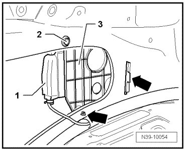 - Unclip holder with differential lock control module (J647) - 3 - from structure - arrows - and remove holder with differential lock control module (J647).