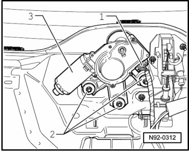 - Disconnect connector - 1 - from Rear Window Wiper Motor (V12) - 3 -.