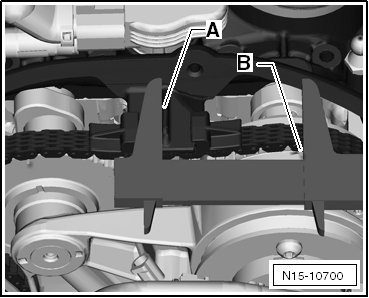 - Measure the distance from the left outer edge - A - to the mark - B - on the intake camshaft.