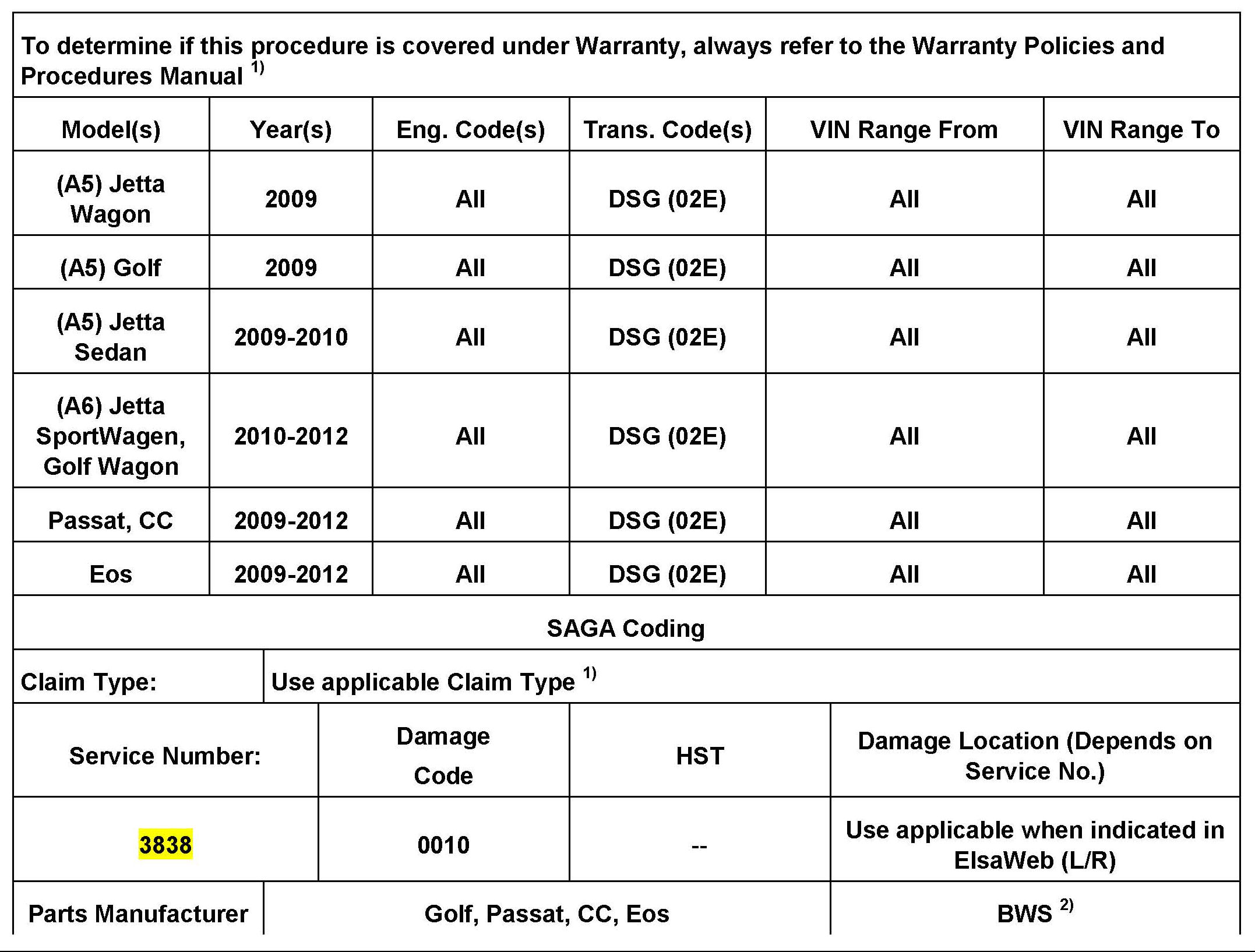 Always check with your Parts Dept. and Repair Manuals for the latest information.