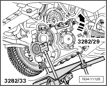 - Move the transmission using the spindles on the transmission mount (3282) into an angled position.