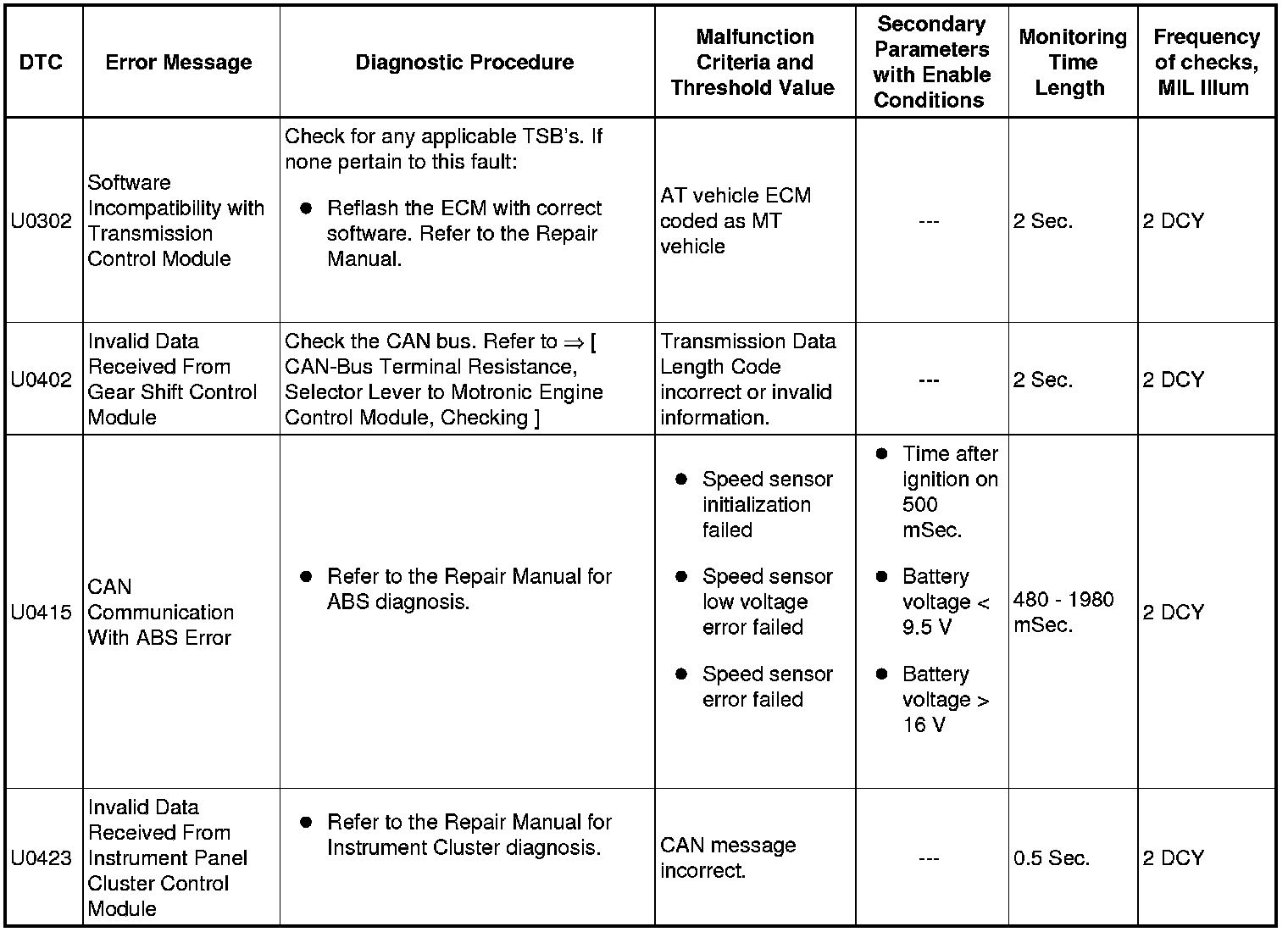 A L L Diagnostic Trouble Codes ( DTC )