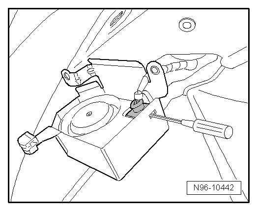 - Disengage harness connector - 1 - through opening in housing - 2 - using a small screwdriver and remove Alarm Horn - 3 - out of wheel housing.