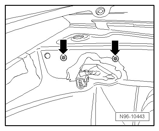 - Using (VAS 5134) (or equivalent) and a 6 mm drill bit, drill off heads of both shear bolts - arrows -.