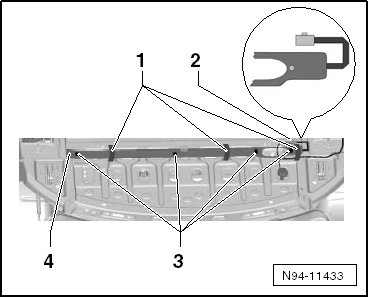 - Remove the access/start authorization antenna 3 from the rear shelf.
