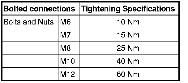 Tightening Specifications