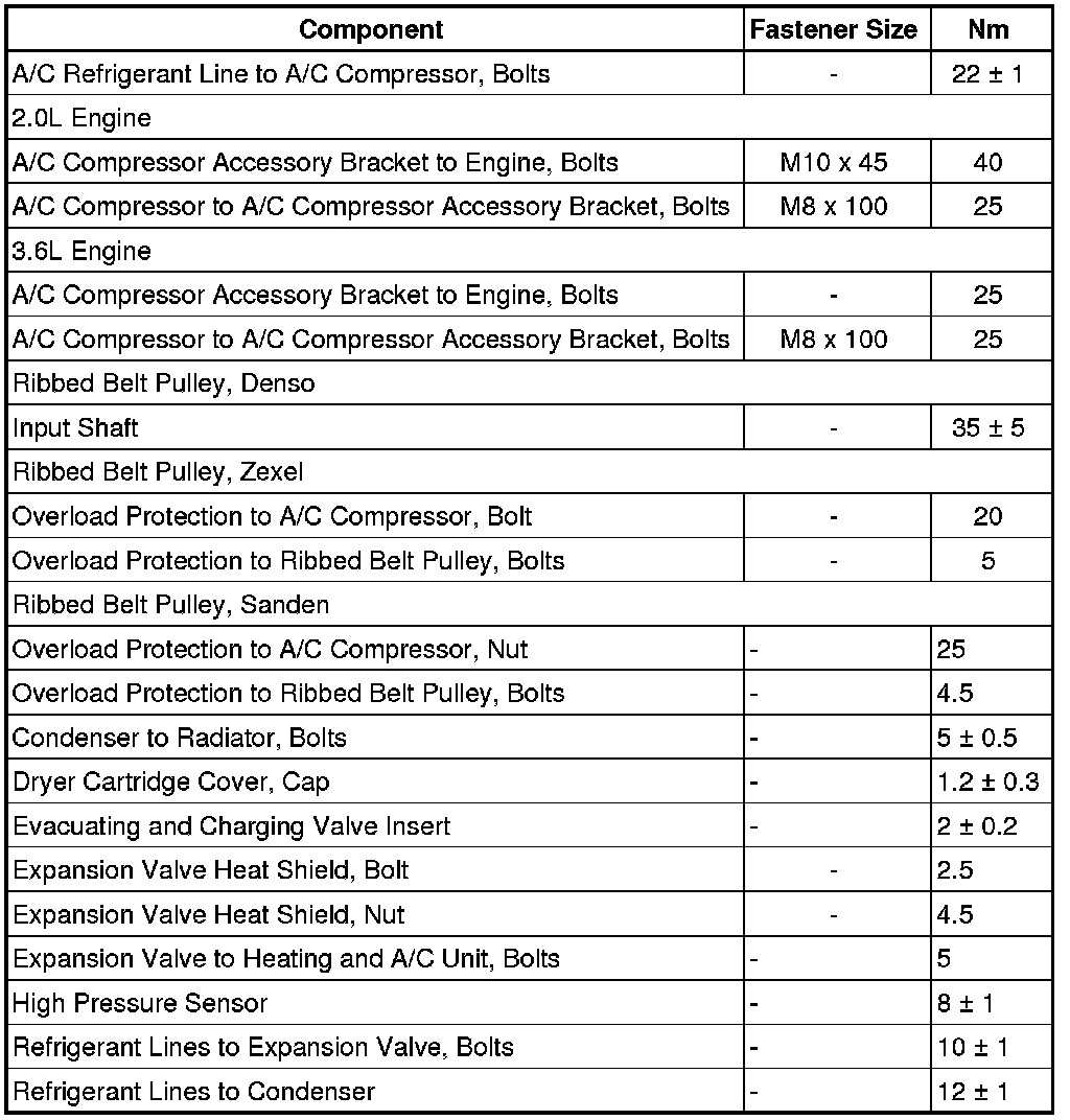 Refrigerant System, Fastener Tightening Specifications