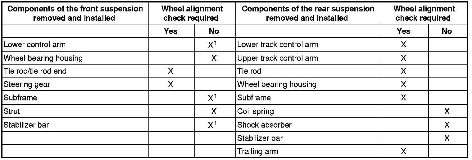 • Suspension components have been removed or replaced.