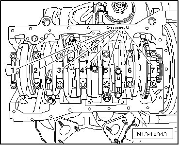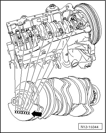 The main bearing shells are allocated to the cylinder block and crankshaft with the correct thickness by the factory. Colored dots serve to identify the bearing thicknesses