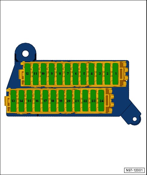 Fuse panel D -SD- , instrument panel onthe front passenger side