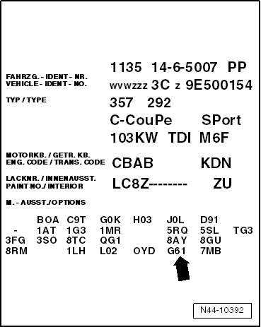 In this example, the basic suspension is equipped with the adaptive chassis DCC G61 - arrow -.
