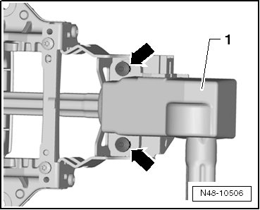 - Install the electronic steering column lock control module - 1 - with new shear bolts - arrows -.