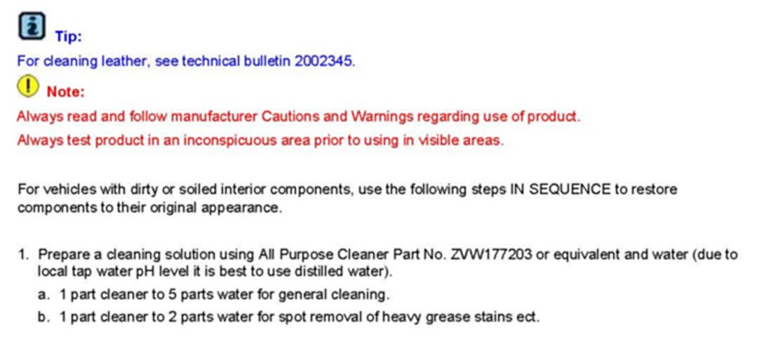 Interior - Cleaning Tips for Vinyls/Plastics/Fabrics