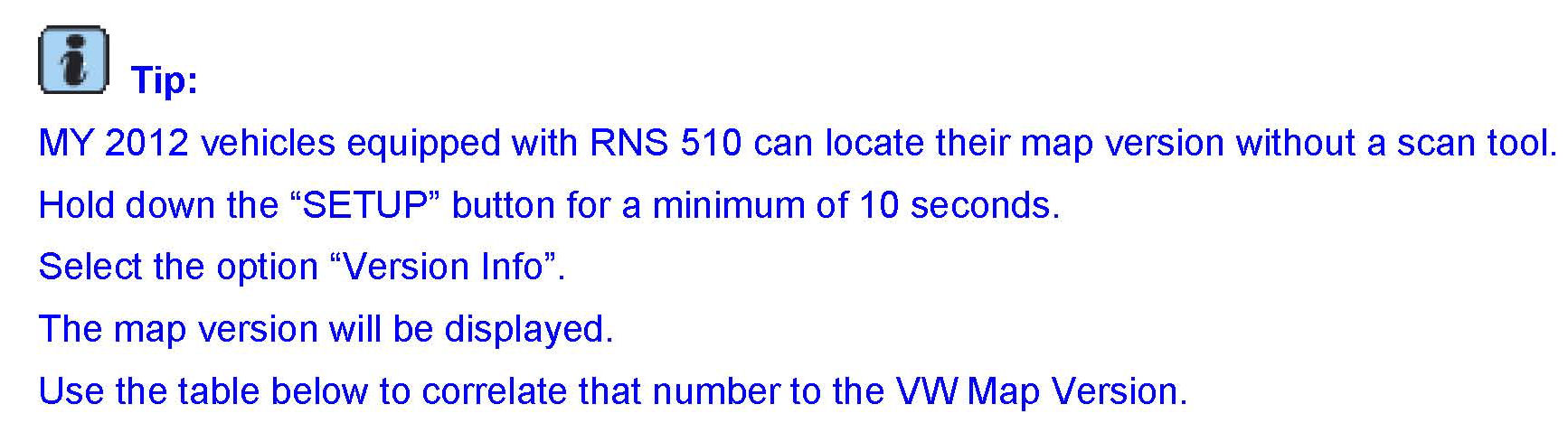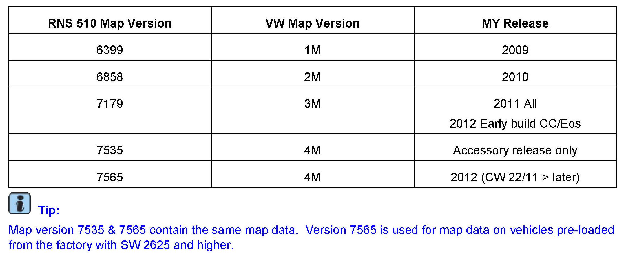 For navigation radios still in production, map updates are released in the third quarter, on a year basis. The following map updates are available through VWAccessories:
