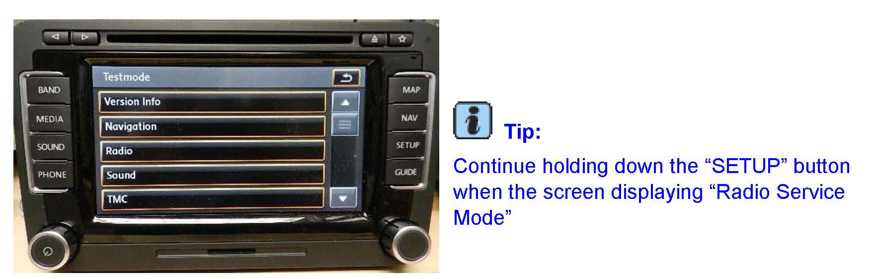 ^ Press the SETUP" button for a minimum of 30 seconds. This will bring the radio to Testmode".