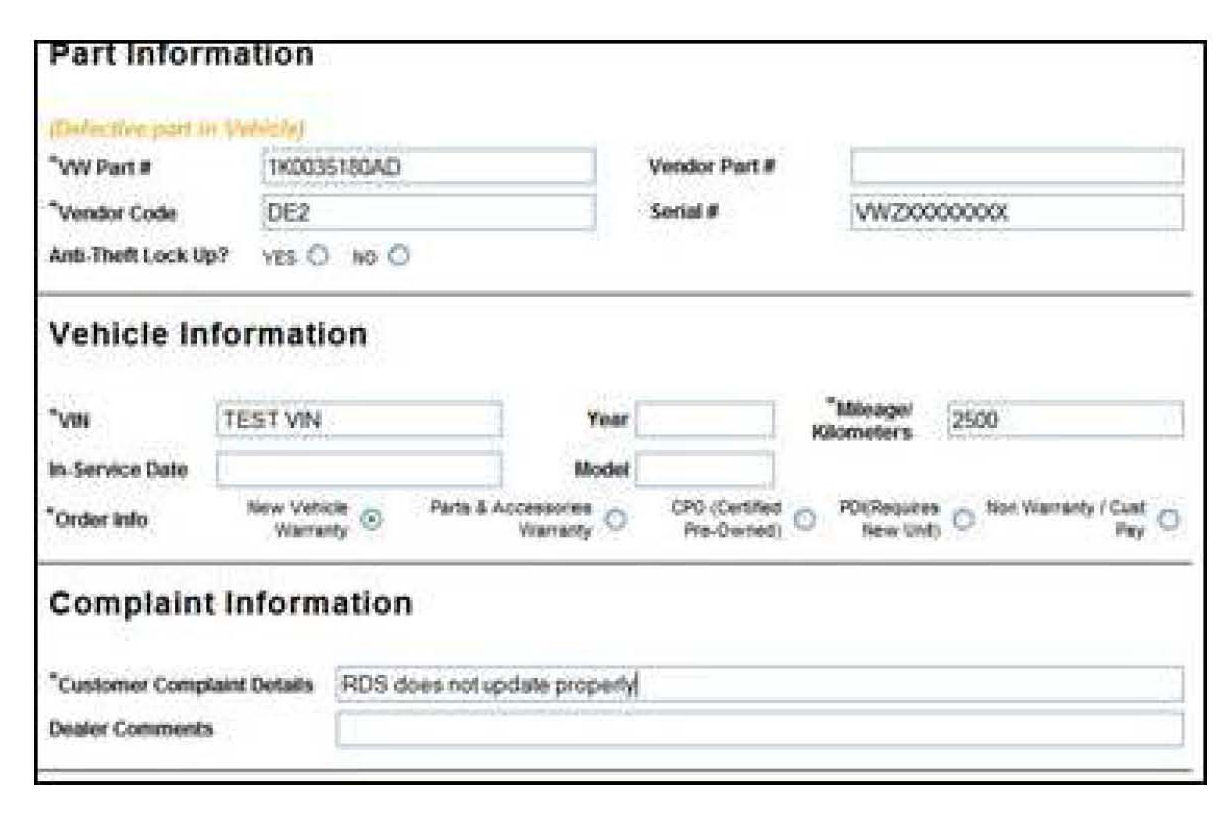^ The Direct Exchange order form will need to include the complaint "RDS does not update properly" under Complaint Information
