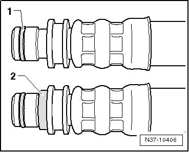 - Coat the seal - 2 - with transmission fluid and carefully slide it on as far as the stop. Make sure the seal does not turn inside out.