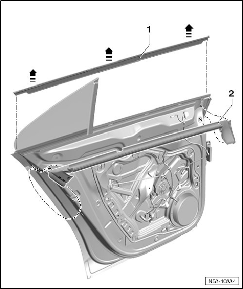 Loosen the front and rear protective strips - 2 - from the retaining clips and remove them evenly from the flange