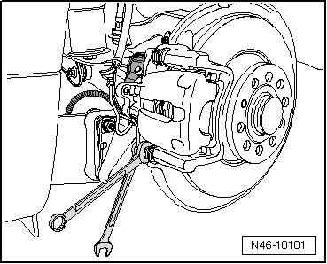 - Then, remove the bolts from the brake caliper, while counter-holding the guide pins.