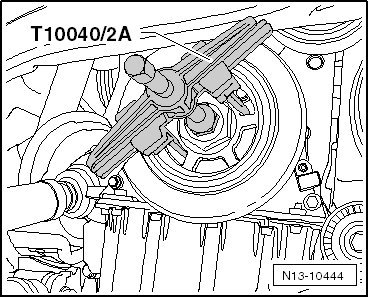 - Remove the vibration damper from the crankshaft hub. If the vibration damper cannot be removed, use the two arm puller (T10040) and puller legs (T10040/2A) and (T10040/3).