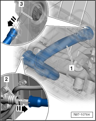 - Install the hose for the glove compartment cooling in reverse order. When doing this, note the following:
