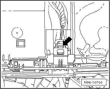 - Disengage harness connector - arrow - and disconnect harness connector.