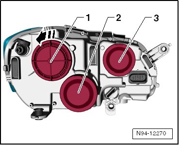 - Remove the parking lamp bulb - 1 - straight out of the bulb socket - 2 - in - direction of the arrow -.