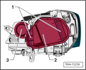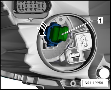 - Turn the handle - 1 - to the left in the - direction of the arrow - and remove together with the turn signal bulb from the headlamp.