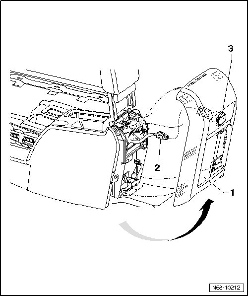 - Remove storage compartment - 3 - from center console and (depending on vehicle equipment) disconnect wiring harnesses.