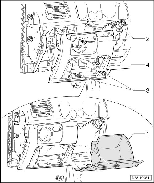 - Remove storage compartment - 1 - from mounts.