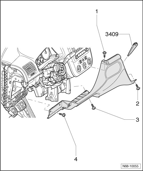- Remove side instrument panel cover on front passenger side Refer to => [ Instrument Panel Side Covers ] Instrument Panel Side Covers