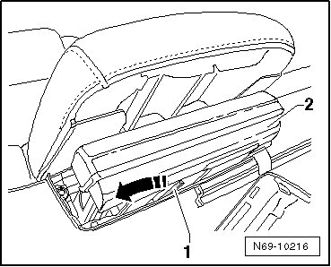 - Move lever - 1 - in direction of arrow and press module - 2 - down as far as stop.
